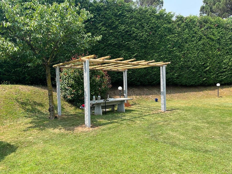 Pergole in granito con pali di castagno per giardini, grotti e aree outdoor